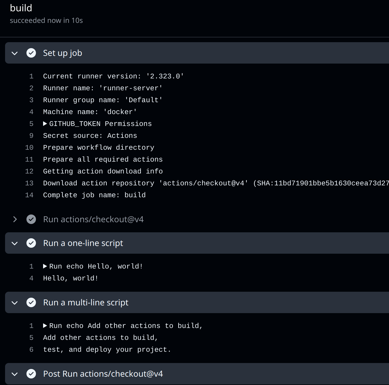 runner@runner-server:~$ sudo ./svc.sh startYou should see the script’s output in your build log: