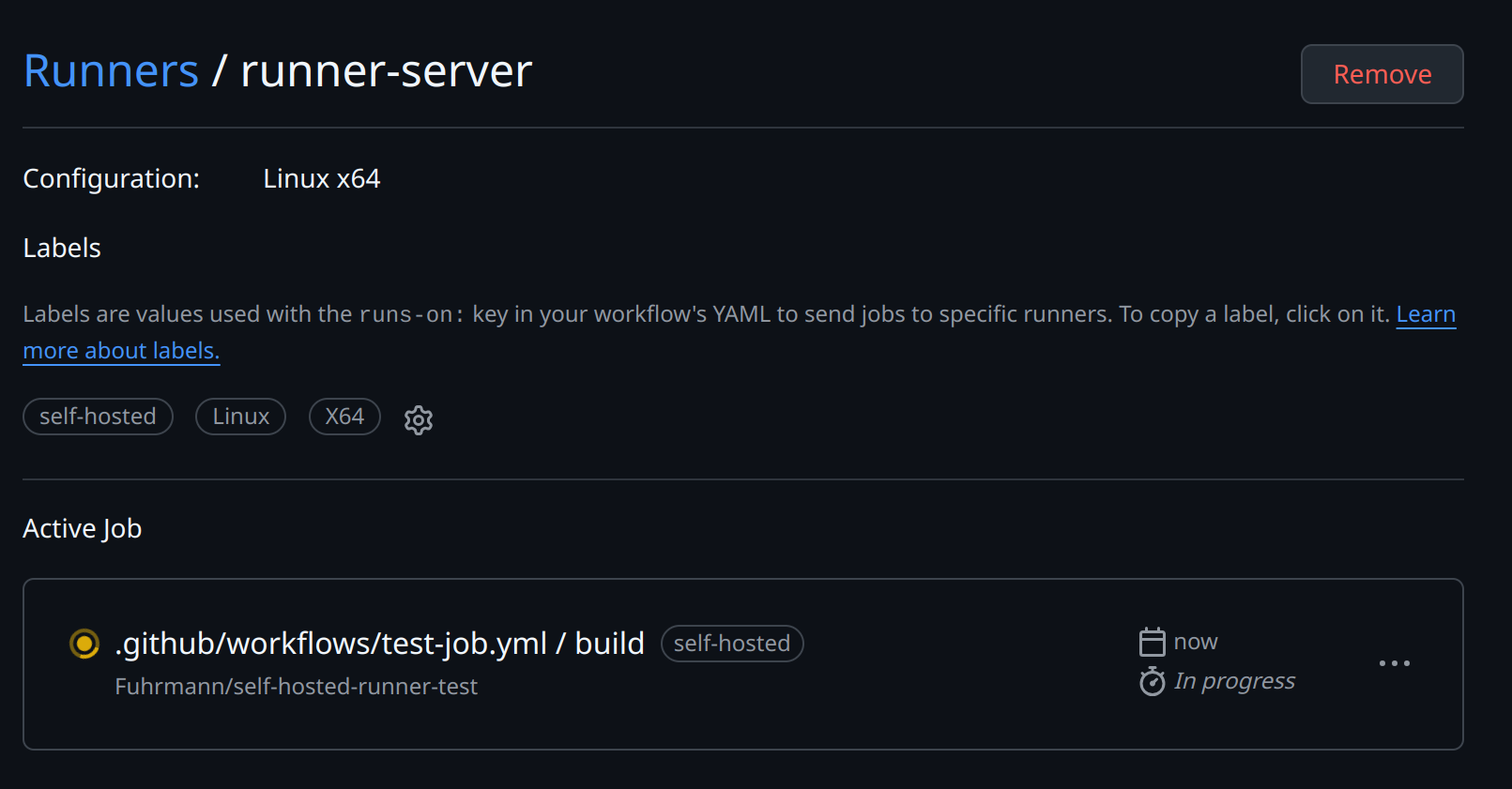 Job is about to start running on the runner: runner-server (repository)And in your runner-server: